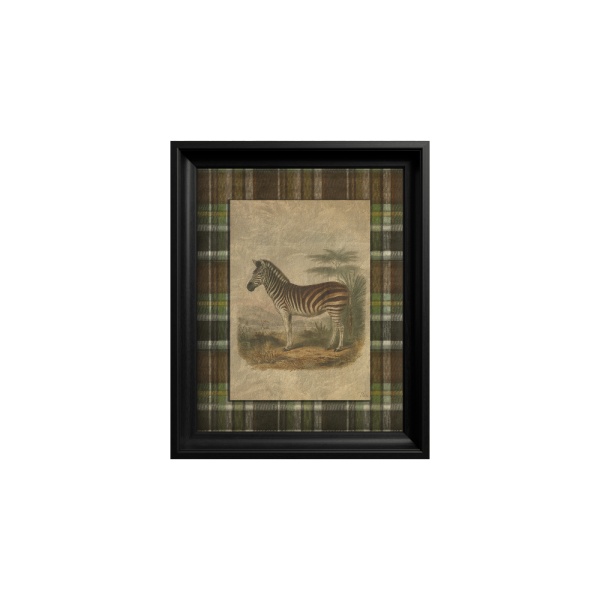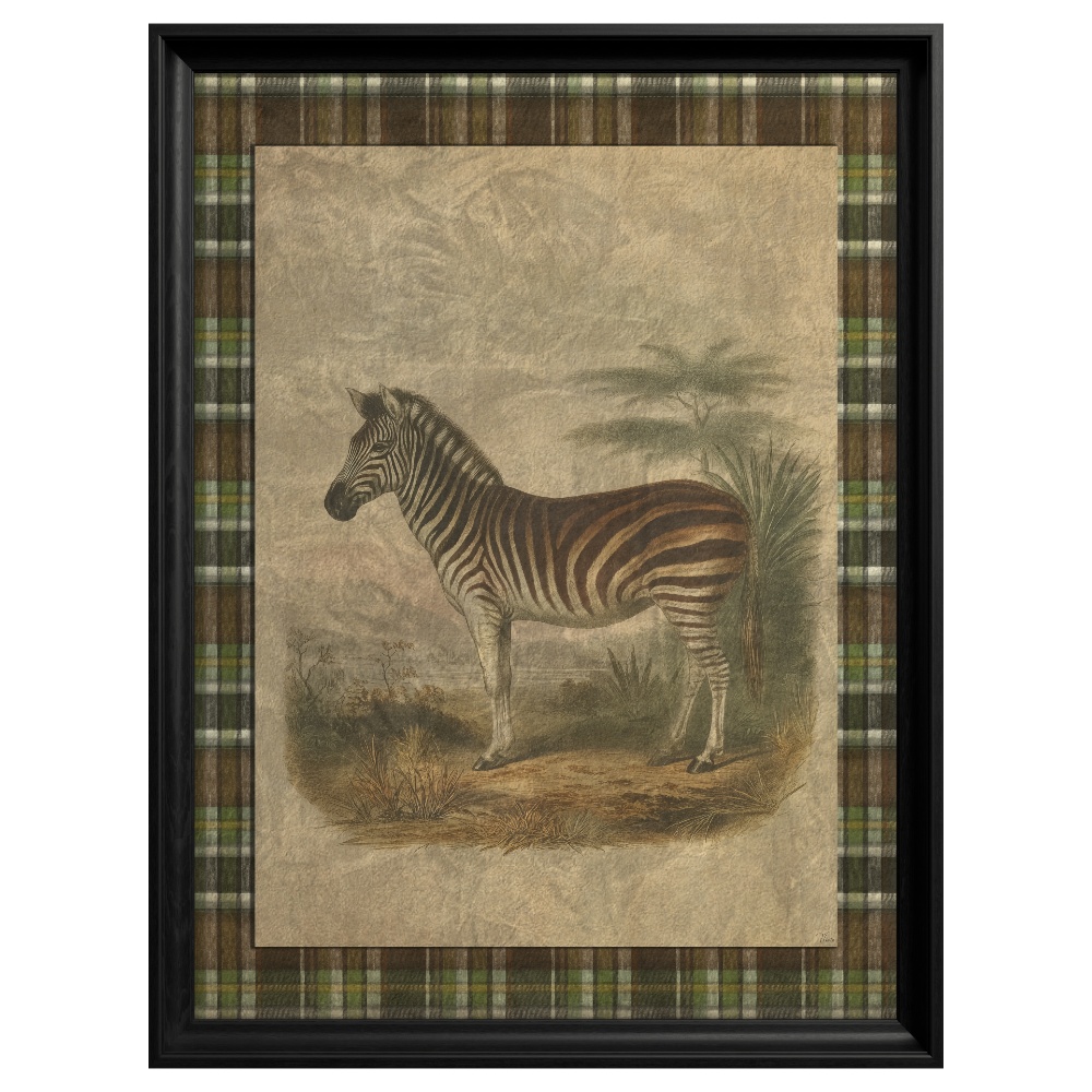 Juxtapunerea dintre modelul organic al zebrei și fundalul geometric de tartan scoțian creează un stil eclectic fascinant, plin de personalitate. Finisat cu o ramă neagră elegantă, acest tablou din seria "Heritage Menagerie" este ideal pentru un decor modern sau colonial, inspirând unicitate, armonie și stil.