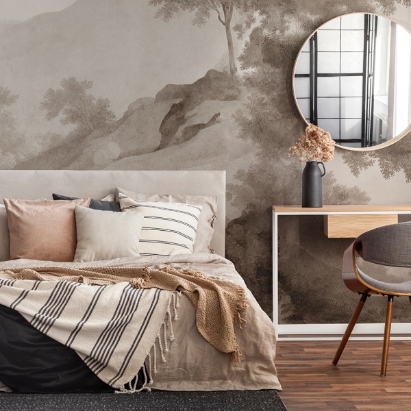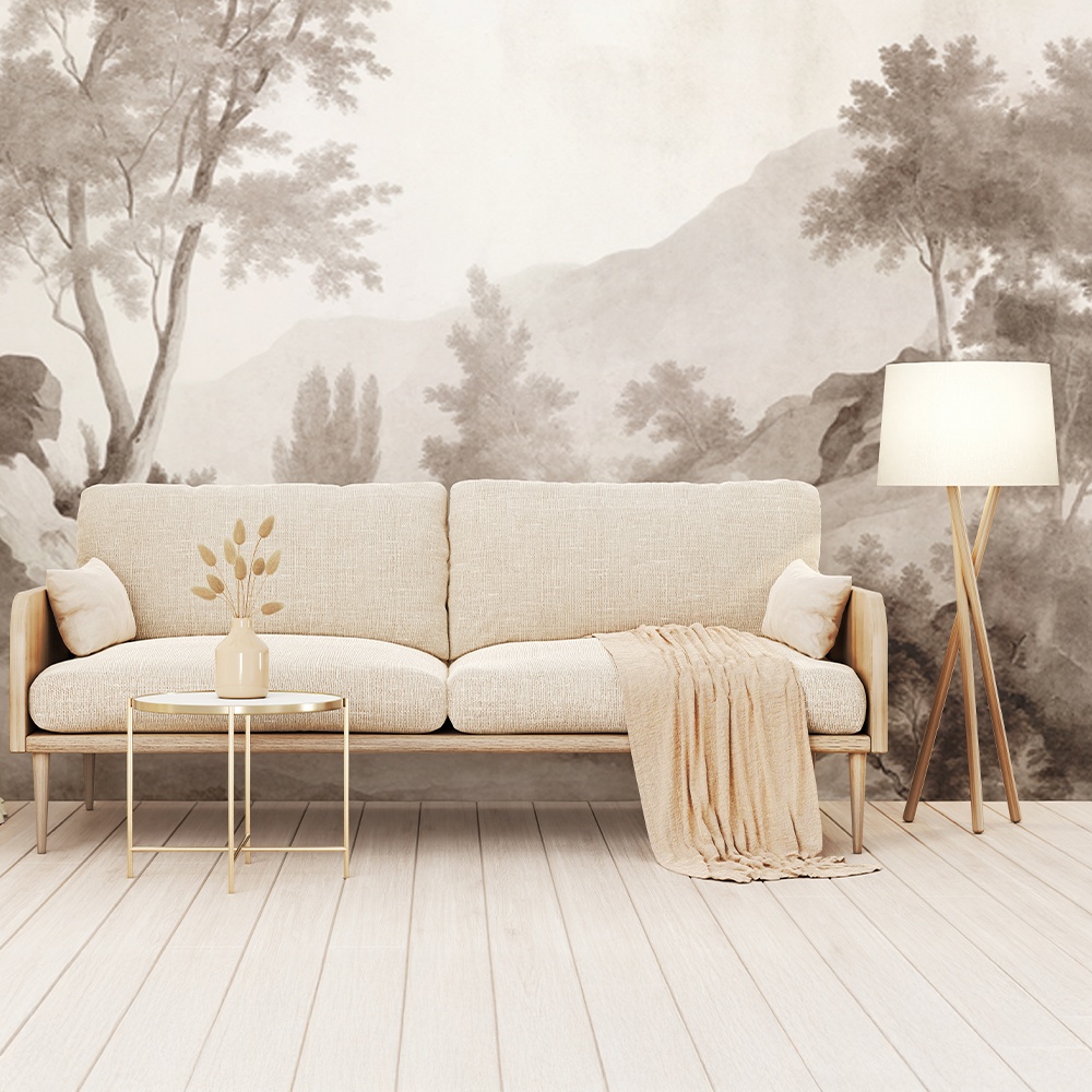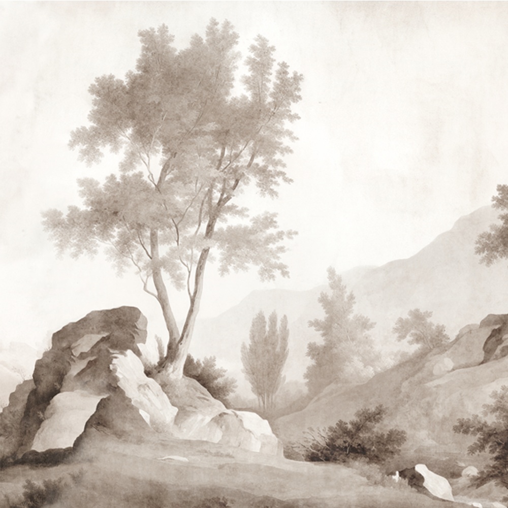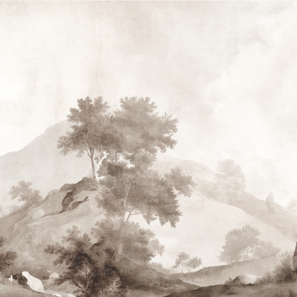Ethereal Veil Cream este un mural al delicateții și al transcendenței. Ceața și lumina transformă peisajele în viziuni onirice. Pictat în degradeuri delicate de albastru, fildeș și nuanțe de teracotă, acest tapet evocă poezia clipelor efemere surprinse în tușe de pensulă.
